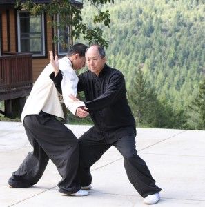 - la pratique de la séquence de combat à deux (散手, sǎnshǒu) : l’apprentissage progressif de la distance et du rythme, de la combinaison permanente de l’attaque et de la défense, dans des situations de combat usuelles et de plus en plus réalistes.